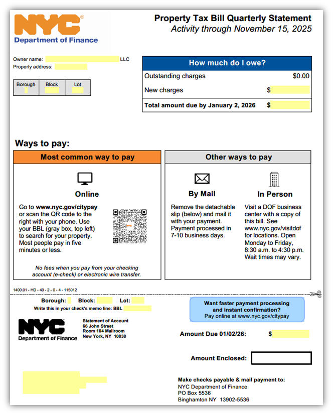 NYC 2025-26 3Q Property Tax Bills Are Now Online