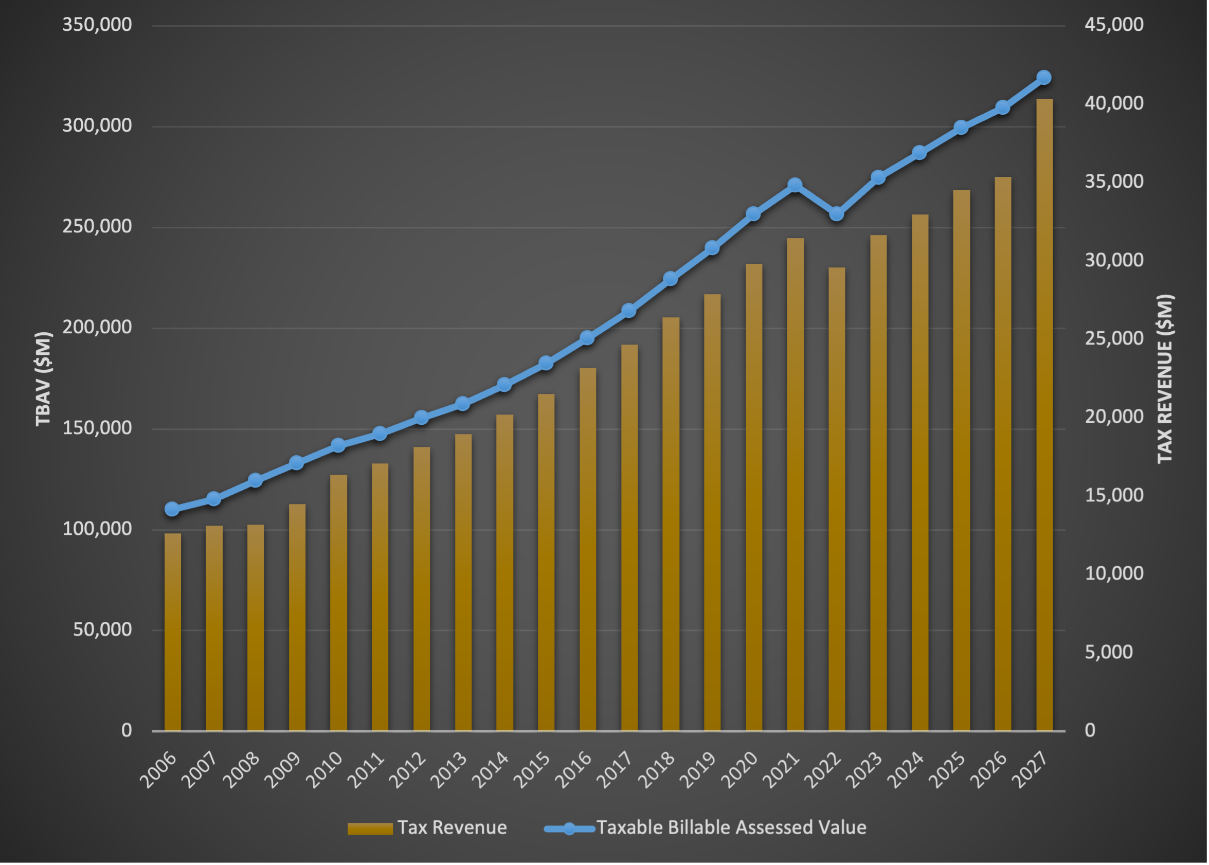 - In the final roll estimates, Class 1 taxable billable assessed value (TBAV) is expected to be $28.355 billion, growth of 3.6 percent over 2026, and is forecast to grow at an annual average of 3.6 percent from 2028 through 2030.